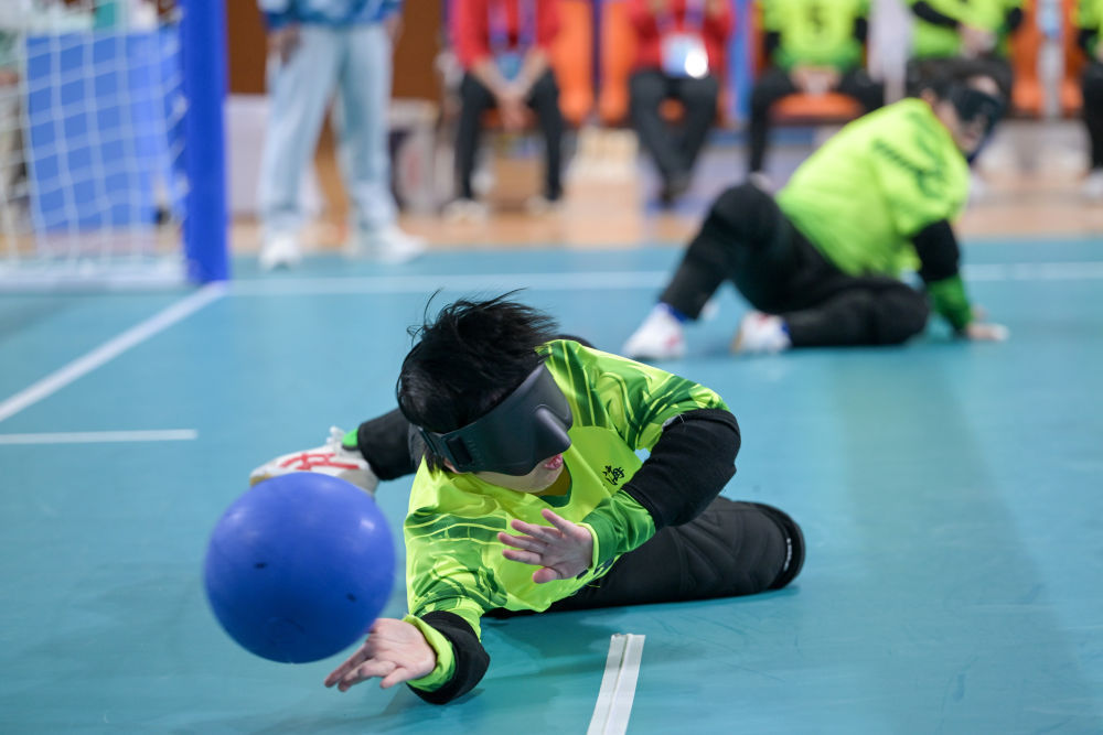 12月8日,在广州举行的寰宇第十二届残疾东说念主领略会暨第九届荒芜奥林匹克领略会盲东说念主门球面孔女子组小组赛中,浙江队13:3投诚上海队。新华社记者 胡智轩 摄